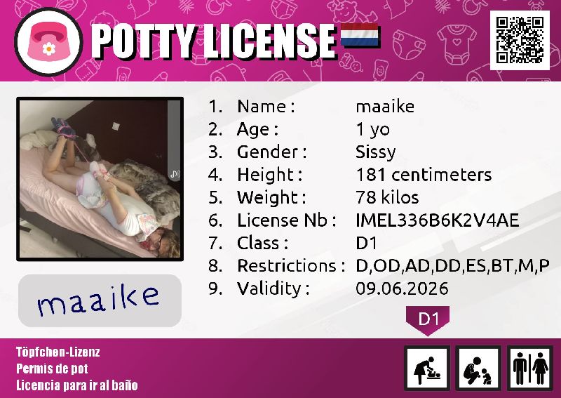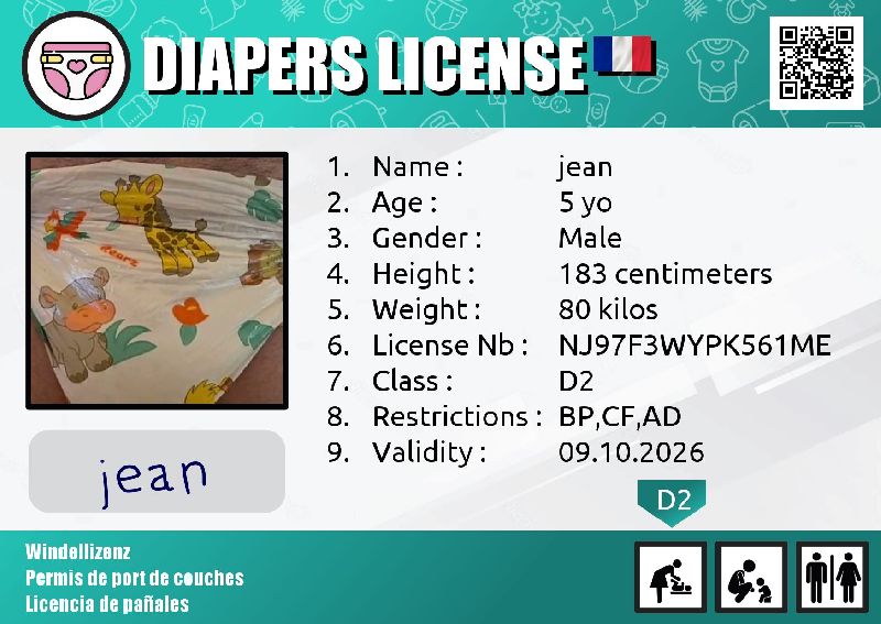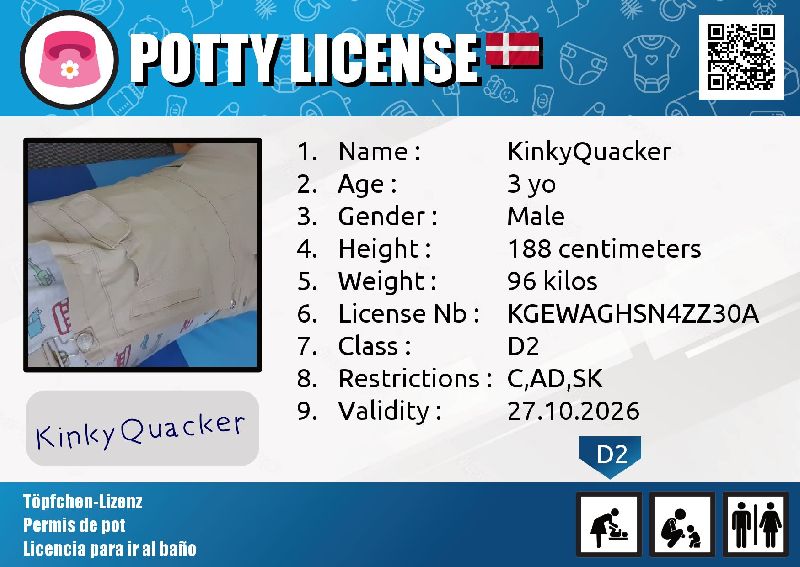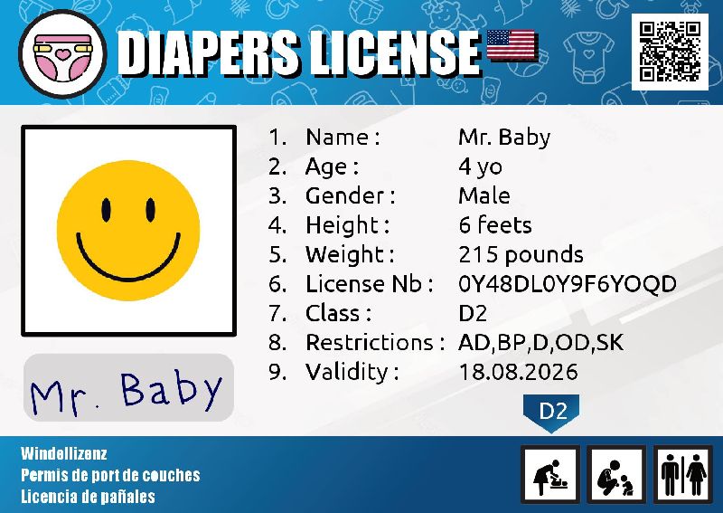 Nothing all very serious, in fact :) A Potty License is a certificate attesting to your right to use the toilet, or on the contrary to be protected with different accessories, such as diapers.